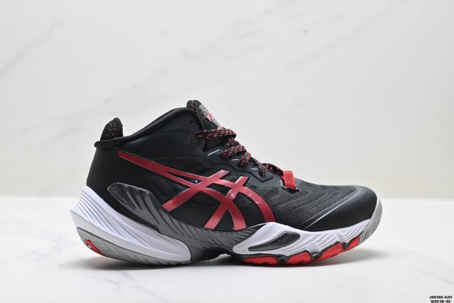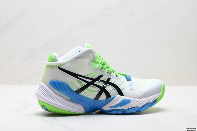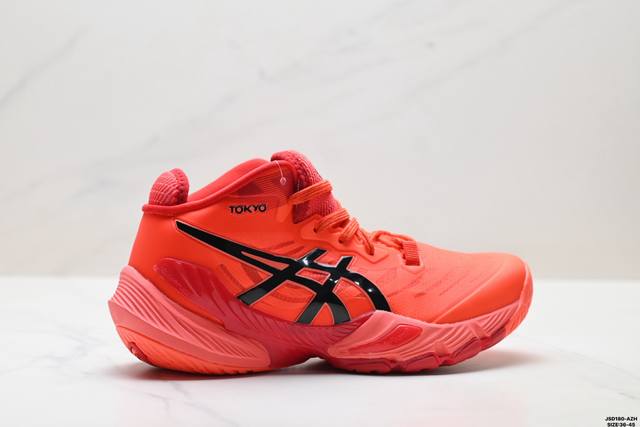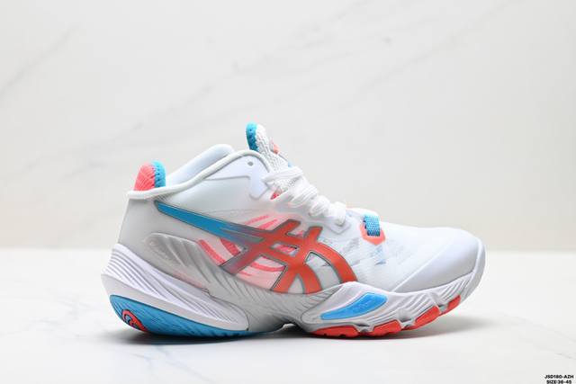 Company Grade Asics Metarise Low-Top Volleyball Shoes with Comfortable, Slip-Resistant, Abrasion-Resistant, Breathable, and Supportive Fabric Mesh. Featuring a Mono-Sock upper design to promote comfortable wear and excellent support, the Dynawrap technology provides supportive panels from the bottom arch of the laces to the midsole edge for increased stability during quick transitions. Style Code: 1051A058-001. Sizes: 36-45. Ld: Jsd180-Azh