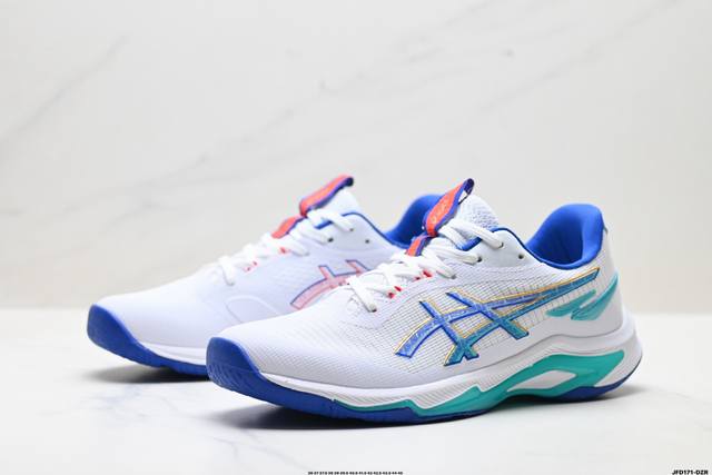 Company Grade Asics Netburner Ballistic FF4 Professional Training Shoes. Lightweight, comfortable, and breathable materials upgraded with new cushioning technology in the midsole. The propulsion plate layer in the midsole helps propel the feet forward, creating a smoother, more powerful experience when pushing off the ground. The redesigned midsole cushioning technology enhances foot rebound in interval running and competition. Product Code: 1051A088-101. Sizes: 36, 37, 37.5, 38, 39, 39.5, 40.5, 41.5, 42, 42.5, 43.5, 44, 45. ID: Jfd171-Dzr.
