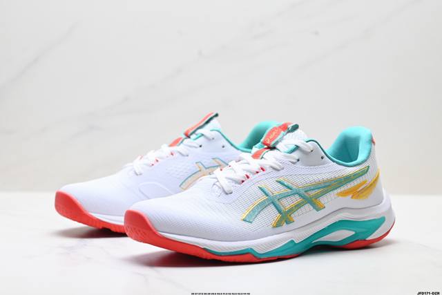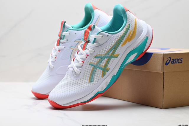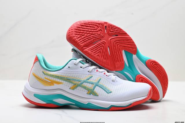 Company Grade Asics Netburner Ballistic FF4 Professional Training Shoes. Lightweight, comfortable, and breathable materials upgraded with new cushioning technology in the midsole. The propulsion plate layer in the midsole helps propel the feet forward, creating a smoother, more powerful experience when pushing off the ground. The redesigned midsole cushioning technology enhances foot rebound in interval running and competition. Product Code: 1051A088-101. Sizes: 36, 37, 37.5, 38, 39, 39.5, 40.5, 41.5, 42, 42.5, 43.5, 44, 45. ID: Jfd171-Dzr.