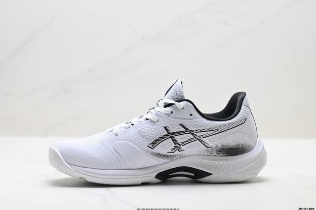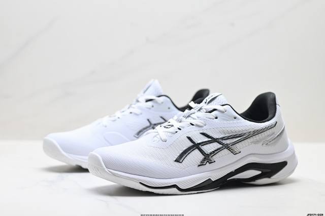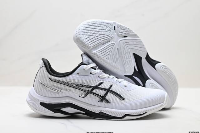 Company Grade Asics Netburner Ballistic FF4 Professional Training Shoes. Lightweight, comfortable, and breathable materials upgraded with new cushioning technology in the midsole. The propulsion plate layer in the midsole helps propel the feet forward, creating a smoother, more powerful experience when pushing off the ground. The redesigned midsole cushioning technology enhances foot rebound in interval running and competition. Product Code: 1051A088-101. Sizes: 36, 37, 37.5, 38, 39, 39.5, 40.5, 41.5, 42, 42.5, 43.5, 44, 45. ID: Jfd171-Dzr.