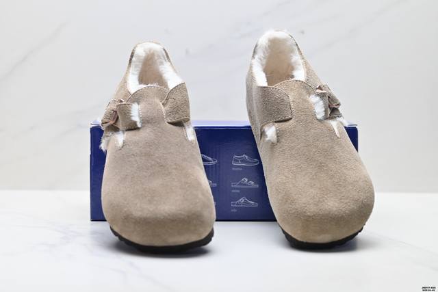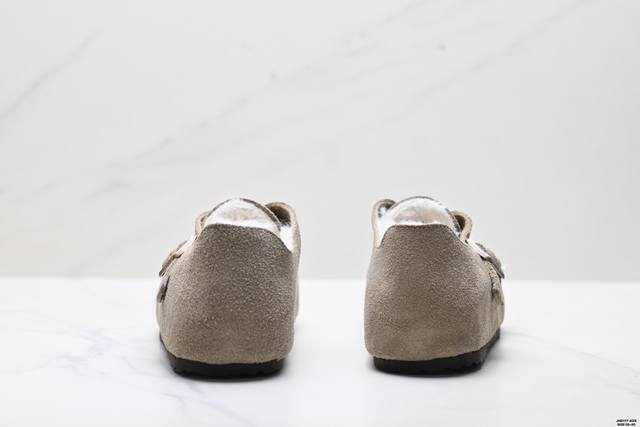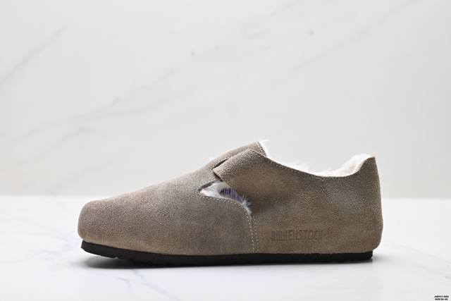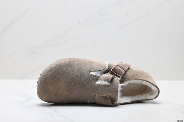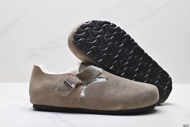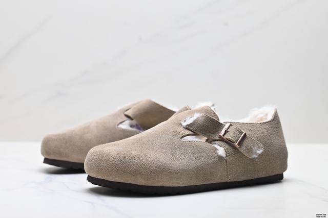 Company Grade Birkenstock London Shearling Series Cowhide Suede Comfortable Warm Full-Coverage Birkenstock Casual Shoes DDD Features soft cowhide suede lining, shearling upper, wavy midsole, and cushioned cork rubber outsole DDD Exclusive original shoe purchase and development, unique side mold, metal buckle design, exquisite original packaging, complete accessories, private mold development, full set of customized hardware accessories and packaging DDD Item Number: 1010504 DDD Sizes: 35-45 DDD ID: Jhd117-Ads DDD