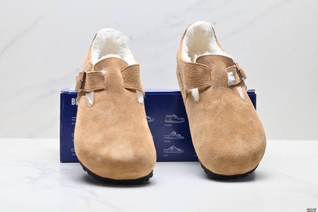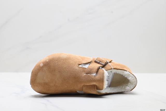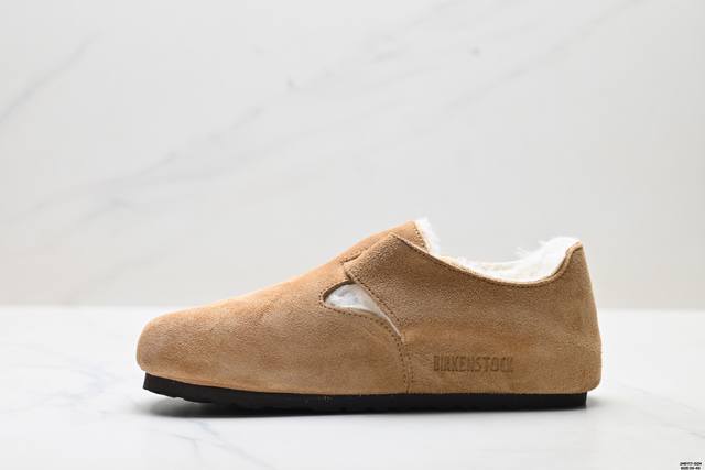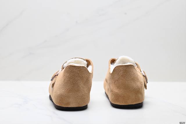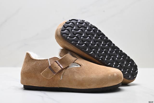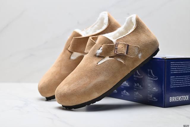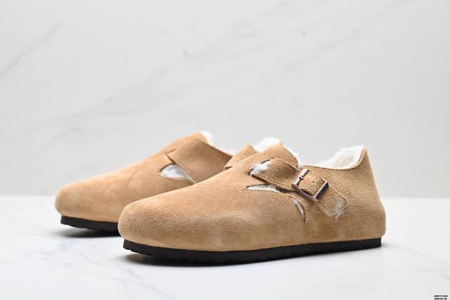 Company Grade Birkenstock London Shearling Series Cowhide Suede Comfortable Warm Full-Coverage Birkenstock Casual Shoes. Features a soft cowhide suede lining, shearling upper, wavy midsole, and cushioned cork rubber outsole. Exclusive original shoe purchase and development; unique side mold with metal buckle design; exquisite original packaging and complete accessories; custom mold development with a full set of customized hardware and packaging. Item Number: 1010504. Sizes: 35-45. ID: Jhd117-Dzh.