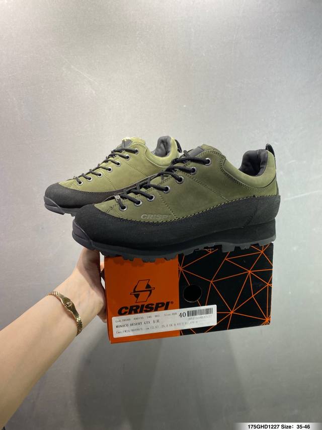 Company Grade Crispi Monaco Hiking Shoes, Italian Outdoor Hiking Shoes, Spring/Summer Men's and Women's Monaco Hiking Boots Gtx Ddd. This hiking shoe, made in Italy, is comfortable and requires no break-in. It has been a classic Crispi hiking shoe for many years, boasting a modern and stylish design. It features a Vibram non-slip outsole and Gore-Tex lining. Ddd. This classic Monaco Gtx mid-cut hiking shoe uses high-quality top-grain cowhide leather, enhancing comfort while maintaining functionality, and giving the shoe a modern and fashionable look. Ddd. Sizes: 38 39 40 41 42 43 44 (as pictured). Ddd. ID: 175Ghd1227 DDD