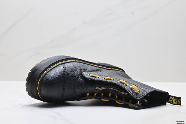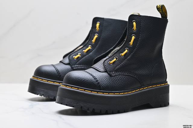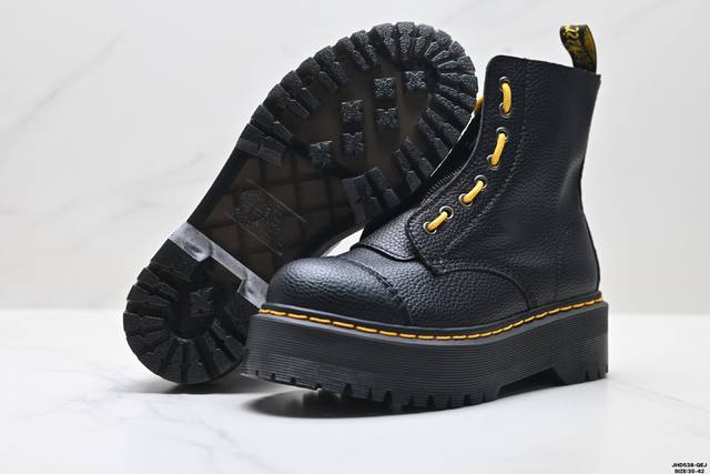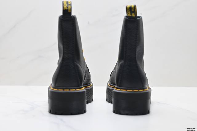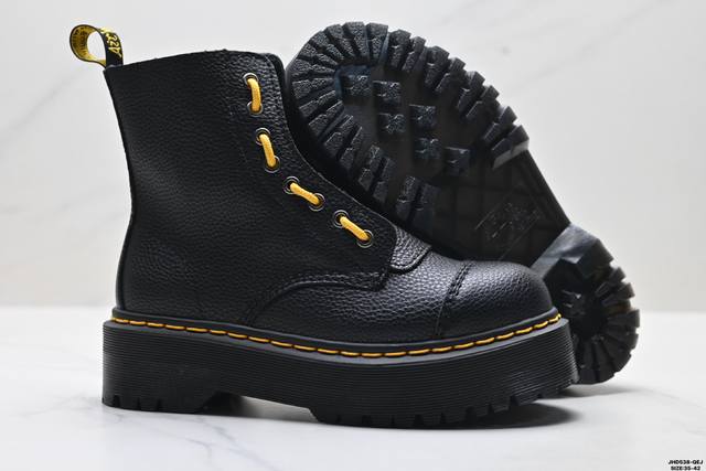 Company Grade Dr. Martens 1460 Smooth Leather Platform Series High-Top British Rider Punk Retro Motorcycle Thick Sole Chunky Heel Martin Boots. Made with hard cowhide leather with split edges, the upper is thick and durable. Original PVC transparent crystal rubber outsole with consistent hollow glue process and genuine outsole stitching. Item No.: 22564001. Sizes: 35-42. ID: Jhd538-Qej.