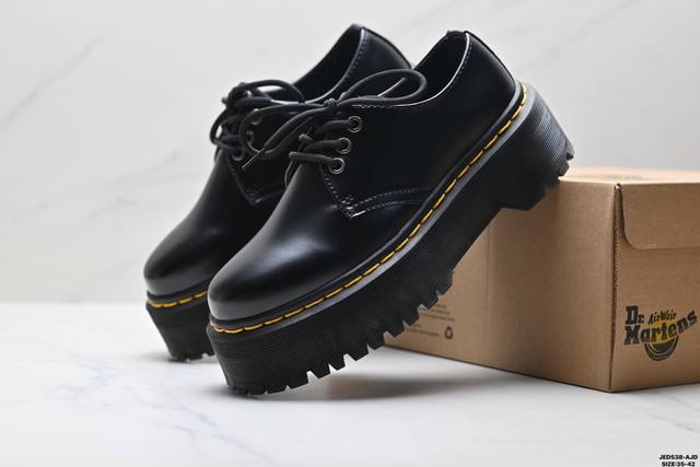 Company Grade Dr. Martens 1461 Smooth Leather Platform Series Low-Top British Rider Punk Retro Motorcycle Thick Sole Chunky Heel Martin Boots DDD Made with hard cowhide split-edge cowhide leather upper, thick and wear-resistant PVC original transparent crystal rubber outsole, original hollow glue process, real outsole last stitching and locking sole DDD Sizes: 35-42 DDD Id:Jed538-Aj DDD D