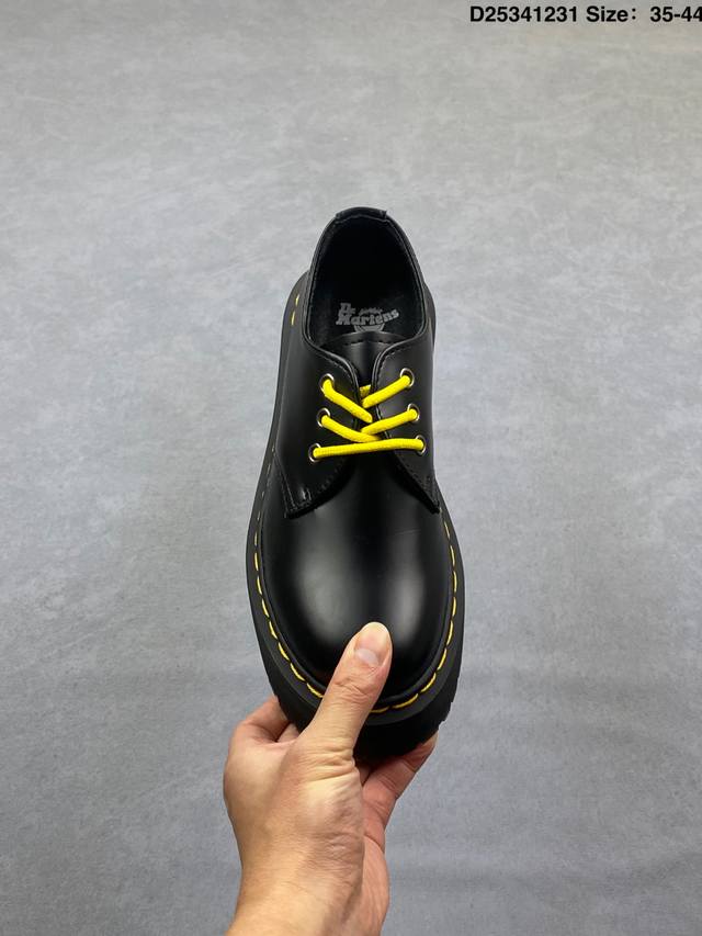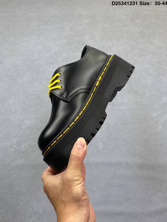 Company Grade: Dr. Martens Jadon Platform 8-Eye Goodyear Welt Boots, Autumn Height-Increasing Ankle Boots for Men and Women. Based on the classic 1460 Dr. Martens boot, the upper uses a combination of two materials, smooth and durable while enhancing the shoe's texture. The metal Swoosh highlights a hardcore style, and the Bex thick sole provides both fashion and height. Product Information: Series: Fusion; Brand: Dr. Martens; Item No.: 26961033; Upper Material: Split cowhide leather; Item No.: 22564001; Id: D25341231; Sizes: 35-42.