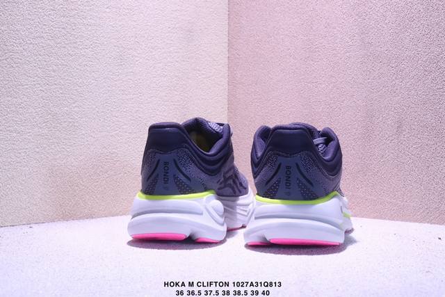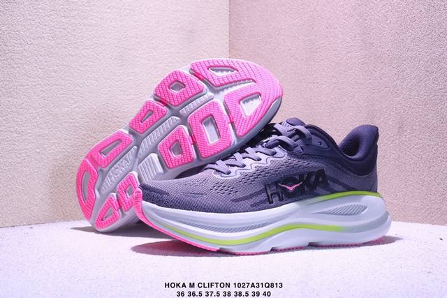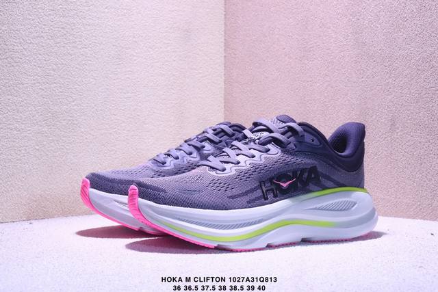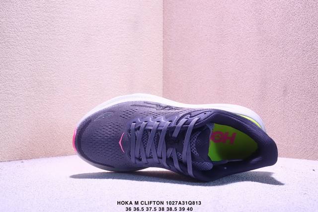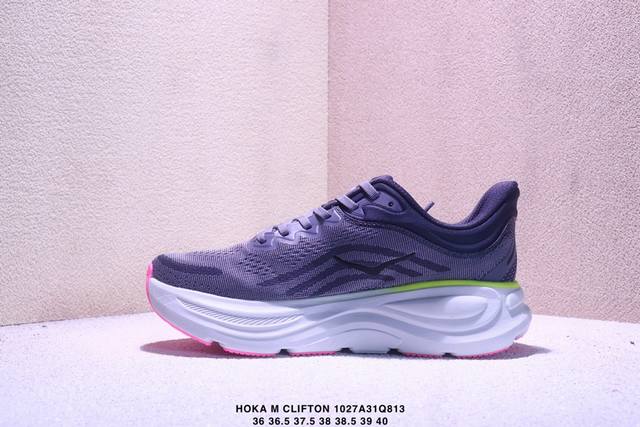 Company Grade Hoka M Clifton 10 Lightweight Low-Top Outdoor Trail Running Shoes. Features include a lightweight, seamless upper, wide, elastic laces that are easy to wear and won't easily come undone, and a thin TPU overlay on a breathable upper. The forefoot and midfoot are reinforced with rubber. The EVA cushioning outsole uses rolling balance technology to guide the runner's natural gait. (Xm1027Q813)