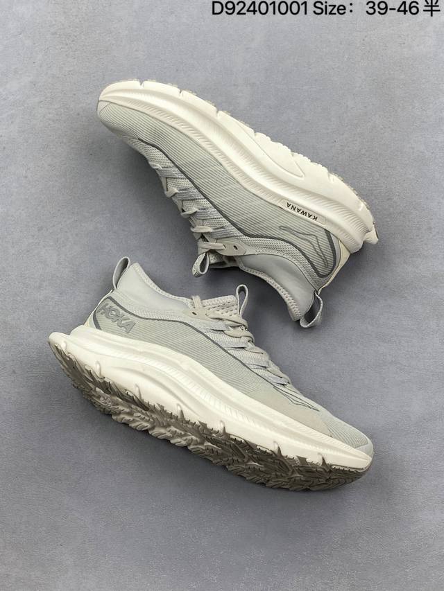 Company Grade Hoka M Kawana Mid Lightweight Low-Top Outdoor Trail Running Shoes Features a lightweight, seamless upper, wide, elastic laces that are easy to wear and won't easily come undone, and thin TPU padding on a breathable upper. The forefoot and midfoot are reinforced with rubber. The EVA cushioning outsole uses Rolling Balance technology to guide the runner's natural gait. Product Code: 1169 Sizes: 39 40 40.5 41 42 42.5 43 44 45 46 (Note: The last part, "