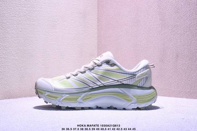 Company Grade Hoka Mafate Speed 2 Ultralight Thick-Soled Lightweight Mountain Running Shoes. Features Rolling Balance Technology and a moderate heel tilt angle for a stable stride and soft feel. The leather upper provides excellent comfort and strong support. The full-length EVA midsole is thick yet lightweight, while maintaining the brand's signature cushioning performance. As a pioneering brand, Hoka always strikes a unique balance between design and function. Opening Ceremony prioritizes bold and personalized design. The combination of these two philosophies has resulted in this exciting new collaboration. Product Code: 1126851. Sizes: 36 , 36.5, 37.5, 38, 38.5, 39, 40, 40.5, 41, 42, 42.5, 43, 44, 45. (Xm1030Q813)