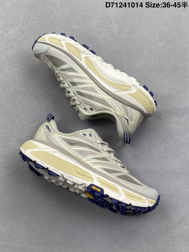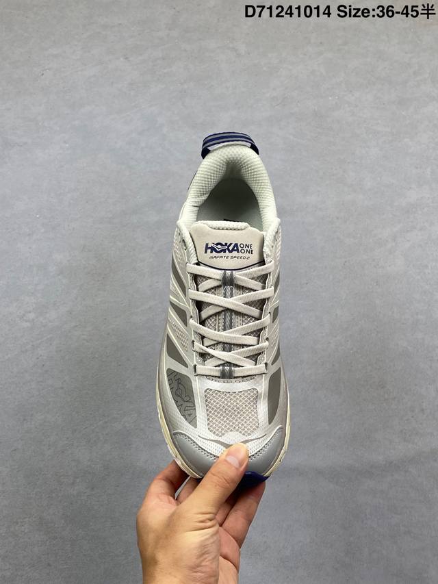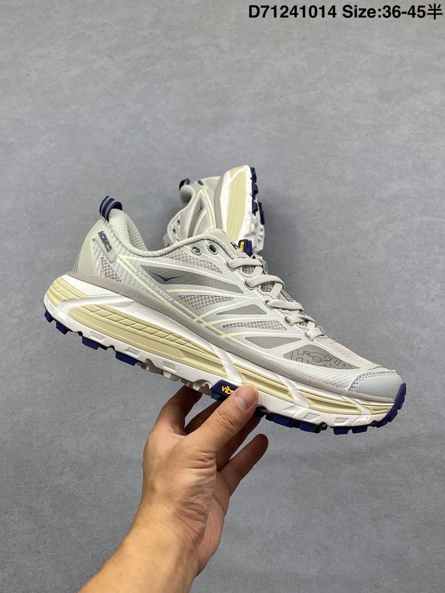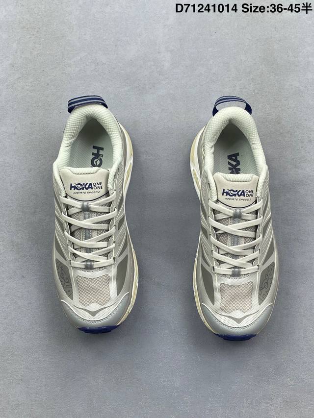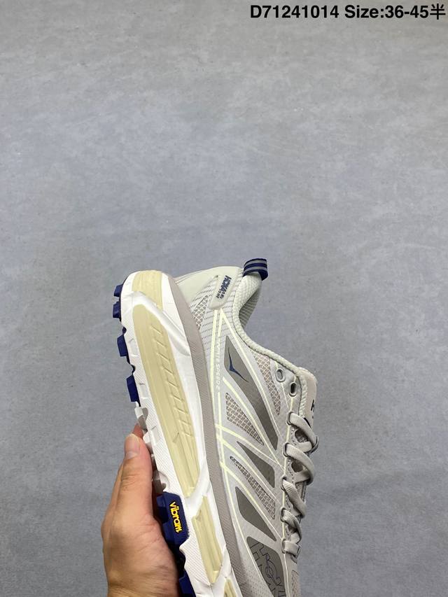 Company Grade Hoka One One Mafate Speed 2 Low Lightweight Low-Top Outdoor Trail Running Shoes. Features include a lightweight, seamless upper, wide, elastic laces that are easy to wear and won't easily come undone, a thin TPU overlay on a breathable upper, a widened rubber outsole with EVA cushioning, and a rolling balance technology to guide the runner's natural gait. Product Code: 1126851. Sizes: 36, 36.5, 37.5, 38, 38.5, 39, 40, 40.5, 41, 42, 42.5, 43, 44, 45. ID: D71241014.