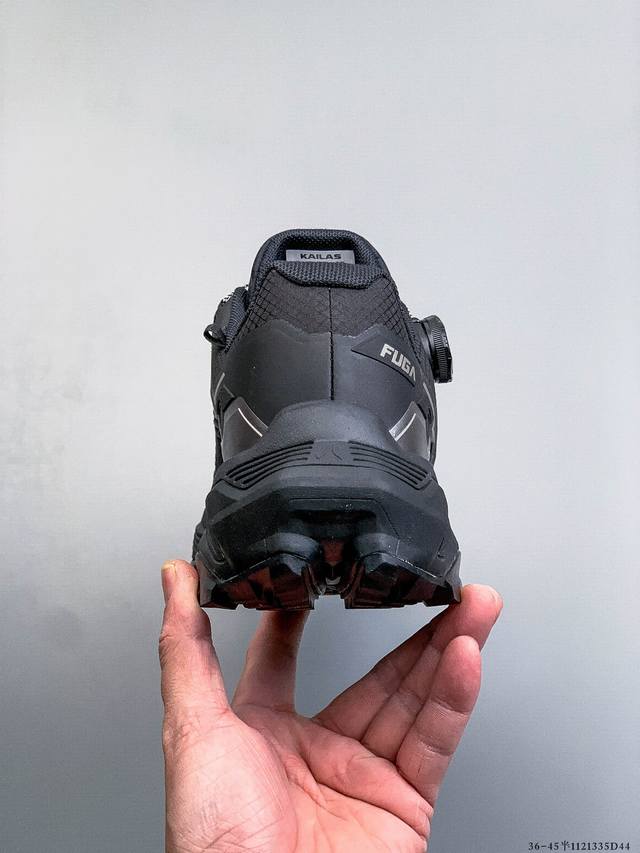 Company Grade! Kailas Fuga Du Boa Lightweight Hiking Shoes with Mesh TPU Shock Absorption, Anti-slip, Breathable, Supportive, Rebound, Low-top, Super Strong Grip. The DDD Boa Fitting System allows for quick and precise micro-adjustment via a knob. The Vibram Megagrip Litebase Outsole features a 125mm ultra-wide forefoot for superior grip, easily handling steep slopes, slippery surfaces, and other complex mountain terrain. The DDD Dual-Density High-Rebound Midsole delivers powerful performance. The forefoot features a supercritical physical foam elastomer, 7% thicker, increasing rebound by 27%. The DDD Stable and Balanced Peripheral Support Elastomer Material enhances forefoot stability. The DDD TPU Exoskeleton Joint Stabilization System provides rock-solid support for a more stable landing. DDD 1121335D44 DDD