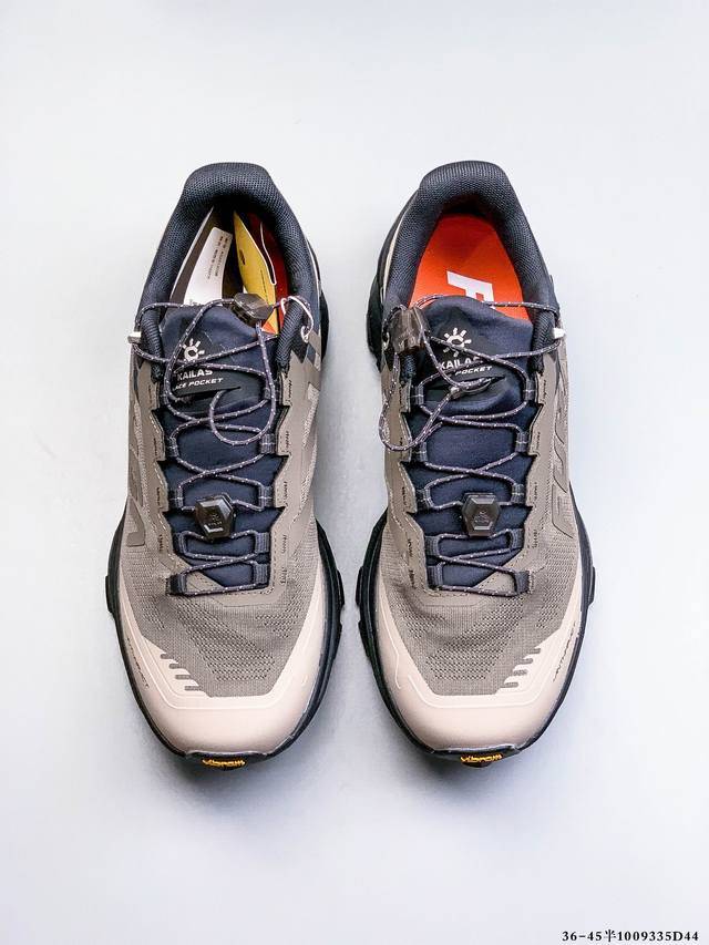 Company Grade! Kailas Fuga Du Lightweight Trail Hiking Shoes with Mesh TPU Shock Absorption, Anti-slip, Breathable, Supportive, Rebound, Low-top, Super Grip Hiking Shoes. Features include a precise fit, a 125mm ultra-wide forefoot providing superior grip for easy handling of steep slopes, slippery surfaces, and other challenging mountain terrain; a dual-density high-rebound midsole for powerful performance; a 7% thicker supercritical physical foam elastomer forefoot for increased rebound (27%); and a stable, balanced outer support elastomer material for enhanced forefoot stability. A TPU exoskeleton joint stabilization system provides rock-solid support for a more stable landing. (Size: 1009335D44)