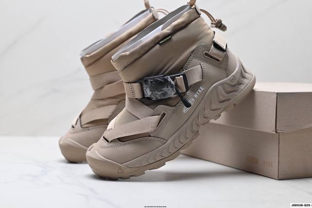 Company Grade Keen Hoodzerra Men's and Women's Water-Resistant, Warm, Fleece-Lined Lace-Up Snow Boots/Ankle Boots. This collaboration uses black and wolf yellow, a simple color scheme reflecting Hyke's philosophy of "inheritance and evolution." It features a one-touch Fidlock system for convenient and quick adjustments. The lining utilizes Keen's unique Keen. Warm technology, using recycled and environmentally friendly PET insulation material. The Keen waterproof and breathable membrane allows moisture to evaporate while effectively waterproofing. Effective wicking away of sweat and moisture prevents dampness, keeping your feet dry. It uses 100 grams of Keen. Warm recycled plastic insulation material to maintain a comfortable temperature of -4