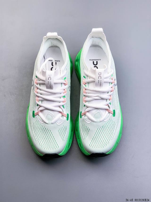 Company Grade! On Cloudsurfer Max Comfortable, Versatile, Simple, Durable Low-Top Running Shoes DDD The Cloudsurfer Max's design is inspired by On's professional racing shoes. The upper is made of engineered woven material for a seamless fit. The lightweight and breathable upper conforms to the foot, ensuring a comfortable fit and stable lockdown. The upgraded rubber padding on the sole provides high grip and durability in both dry and wet conditions DDD 0113 H24 DDD