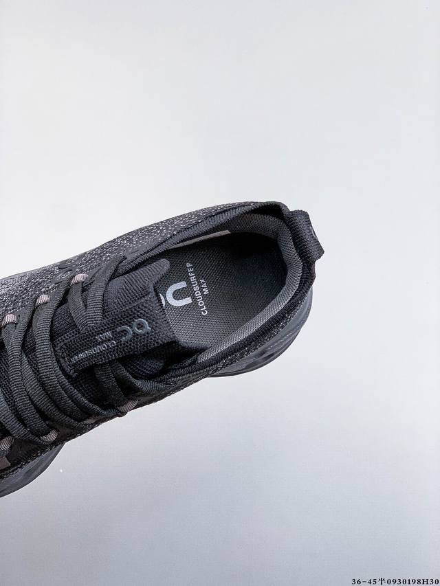 Company Grade! On Cloudsurfer Max Comfortable, Versatile, Simple, Durable Low-Top Running Shoes. The Cloudsurfer Max's design is inspired by On's professional racing shoes. The engineered woven upper provides a seamless fit, while the lightweight and breathable upper conforms to the foot for comfortable wear and stable lockdown. The upgraded rubber sole provides high grip and durability in both dry and wet conditions. (