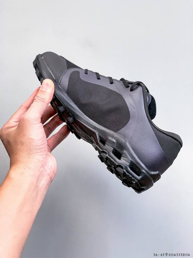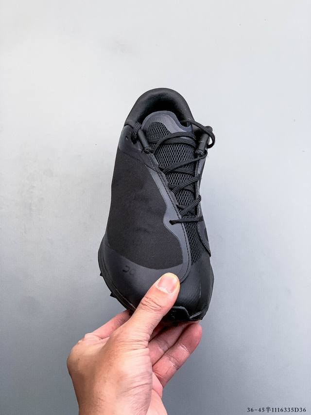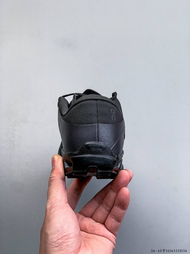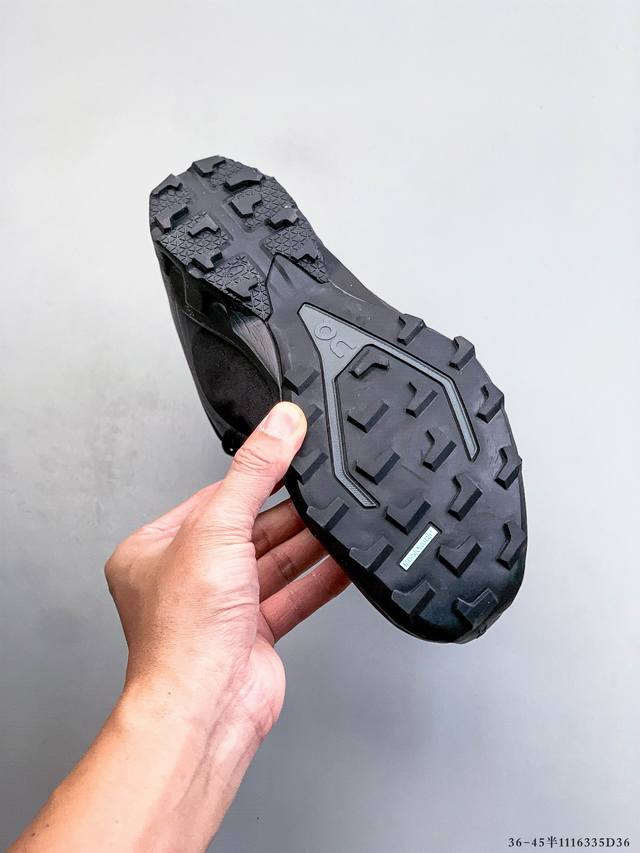 Company Grade! On x Cloudventure Peak PAF Comfortable, Durable, Slip-Resistant, Shock-Absorbing, Breathable Low-Top Running Shoes for Men and Women. The Cloudventure Peak PAF features an all-black color scheme and Missiongrip technology, providing excellent grip and agility. The laces have a diagonal design, combining visual appeal with athletic functionality. This shoe continues the collaboration style of the previous two seasons between On and PAF, retaining the curved splicing design language while incorporating Cloudtec cushioning midsole technology, balancing comfort and functionality. (Item number: 1116335D36)