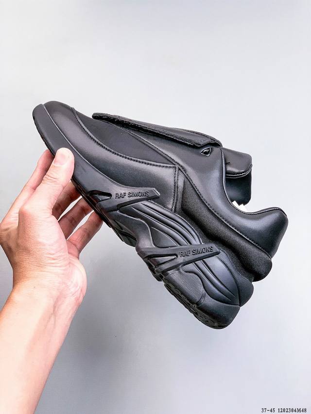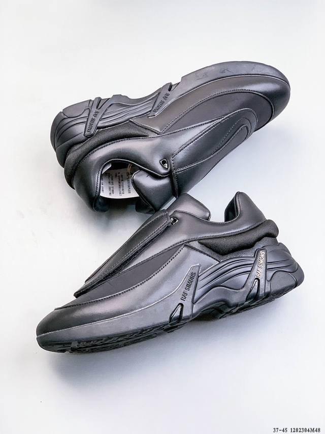 Company Grade Raf Simons Cylon-21 Trendy Sporty Fabric Leather Round Toe Lace-up Low-top Casual Shoes. Made with smooth leather mesh and suede, featuring rubber details, a round toe with lace-up closure, fabric lining, and a rubber sole with an embossed logo. Printed details on the tongue and interchangeable plastic hardware at the heel complete the design. Item Number: Hr740001S-0061 (Ddd 1 04M48)