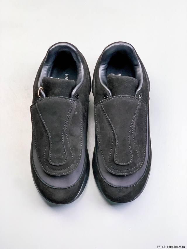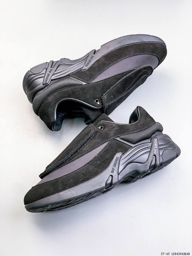 Company Grade Raf Simons Cylon-21 Trendy Sporty Fabric Leather Round Toe Lace-up Low-top Casual Shoes. Made with smooth leather mesh and suede, featuring rubber details, a round toe with lace-up closure, fabric lining, and a rubber sole with an embossed logo. Printed details on the tongue and interchangeable plastic hardware at the heel complete the design. Product Code: Hr740001S-0061 1204304M48