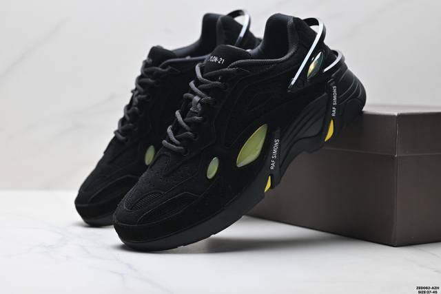 Company Grade Raf Simons Cylon-21 Trendy Sporty Fabric Leather Round Toe Lace-up Low-top Casual Shoes DDD Made with smooth leather mesh and suede, featuring rubber details, a round toe with lace-up closure, fabric lining, and a rubber sole with an embossed logo. Printed details on the tongue and interchangeable plastic hardware at the heel complete the design. DDD Item Number: Hr740008L-0003 DDD Sizes: 37-45 DDD ID: Zed062-Azh DDD