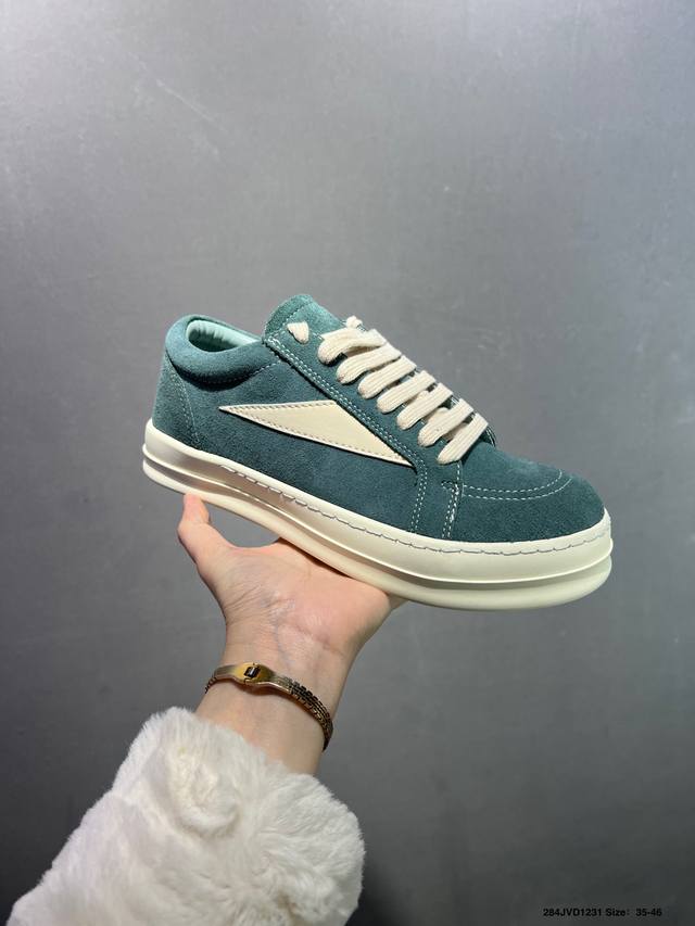 Company Grade Rick Owens Hollywood Calfskin Round Toe Lace-up Low-top Sneakers - Top-notch Value! Premium cowhide leather, delicate, soft, comfortable, and highly breathable. Selected premium rubber sole, sturdy and durable. Simple anti-slip pattern for free movement. Imperceptible 6cm height increase. Official Product Number: 40765711526. Sizes: 36 37 38 39 40 41 42 43 44. ID: 284Jvd1231
