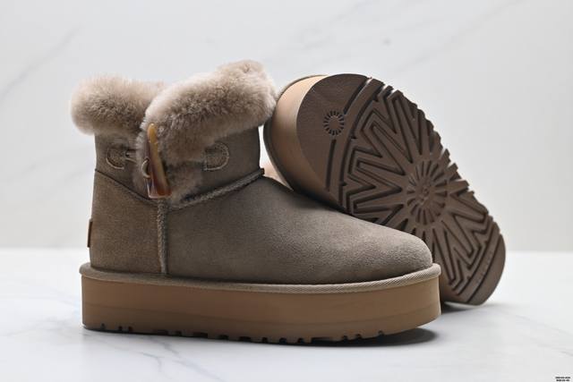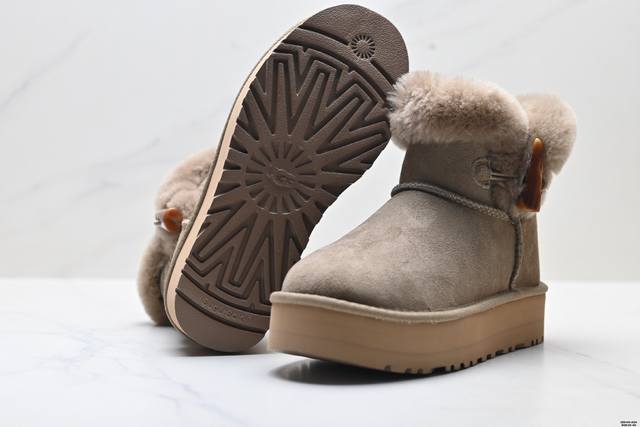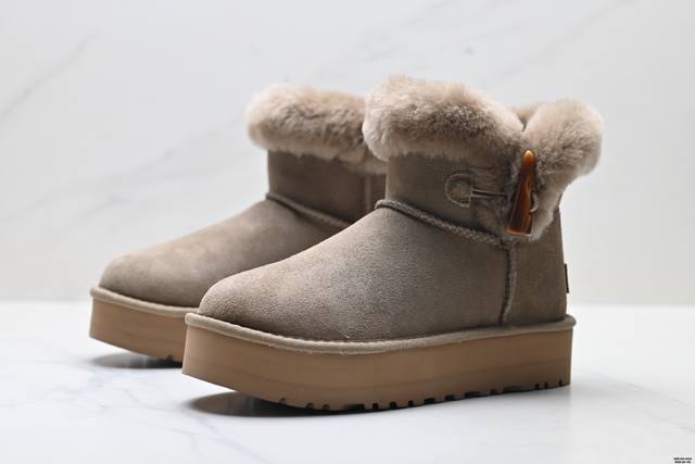 Company Grade Ugg Winter Sheepskin Snow Boots for Women, Thick Sole, Petite Size, Height Increasing, Fleece Lined, Thickened, Non-Slip, Short Boots. Material: Made of high-quality sheepskin, with a thick fleece lining for excellent warmth and effective protection against the harsh winters of Northeast China. Style: Classic toggle buckle design, short boot style, both fashionable and easy to move in, especially suitable for petite women; the thick sole also subtly adds height. Non-Slip Performance: The sole uses a special non-slip material, maintaining stability even on snow or ice, reducing the risk of slipping. Comfort: Ugg boots are known for their comfort, and these snow boots are no exception. Wearing them feels like walking on clouds, and you won't feel tired even after long walks. Item Number: 1118816 Size: 35-40 Ld: Zed145-Dzh