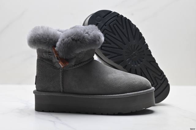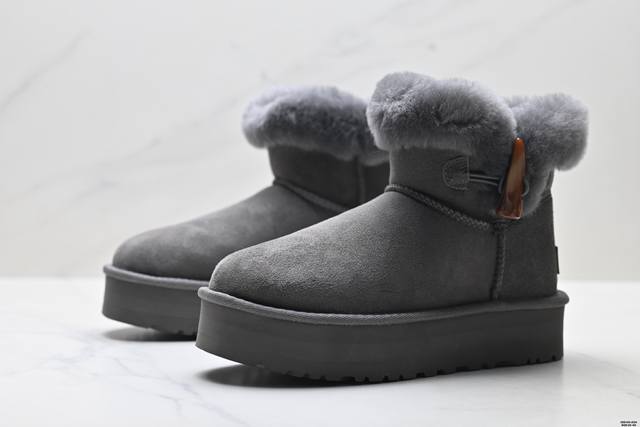 Company Grade Ugg Winter Sheepskin Snow Boots for Women, Thick Sole, Petite Size, Height Increasing, Fleece Lined, Thickened, Non-Slip, Short Boots. Material: Made of high-quality sheepskin, with a thick fleece lining for excellent warmth and effective protection against the harsh winters of Northeast China. Style: Classic toggle buckle design, short boot style, both fashionable and easy to move in, especially suitable for petite women; the thick sole also subtly adds height. Non-Slip Performance: The sole uses a special non-slip material, maintaining stability even on snow or ice, reducing the risk of slipping. Comfort: Ugg boots are known for their comfort, and these snow boots are no exception. Wearing them feels like walking on clouds, and you won't feel tired even after long walks. Item Number: 1118816 Size: 35-40 Ld: Zed145-Dzh