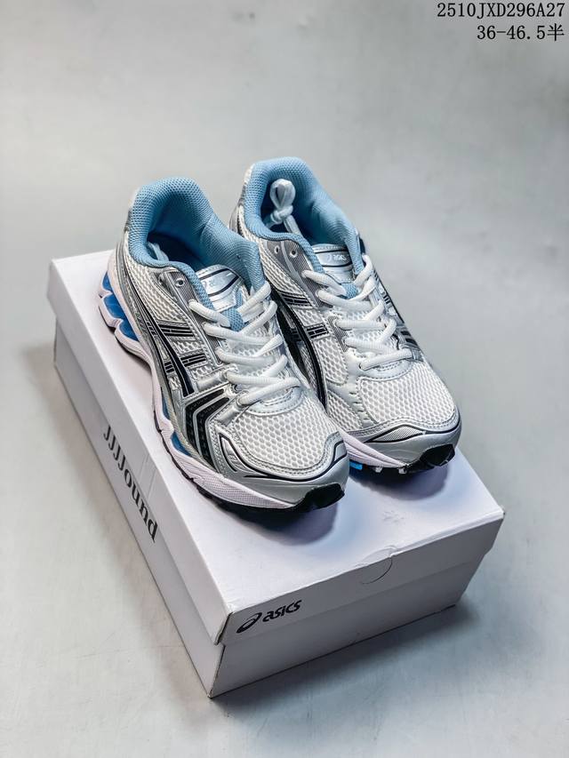 Asics Gel-Kayano 14 was launched in 2008 amidst great anticipation. Designer Hidenori Yamashita was inspired by the word "Flash" to create a futuristic metallic upper, transforming and upgrading the internal performance. It is a complete innovation from the inside out, creating a milestone work for the Gel-Kayano family heritage and the continuation of classic running shoe culture. The Asics Gel Kayano 14 running shoe reinterprets the retro running shape, redesigned with a late 2000s aesthetic. The silver and blue upper exudes a premium feel. Mesh details on the upper and toe enhance breathability. The Asics Gel Kayano 14 features Gel cushioning in the heel midsole and multi-density abrasion-resistant outsole, providing high impact resistance, cushioning, and protection against ground impacts, resulting in exceptional comfort. Get yours now! (