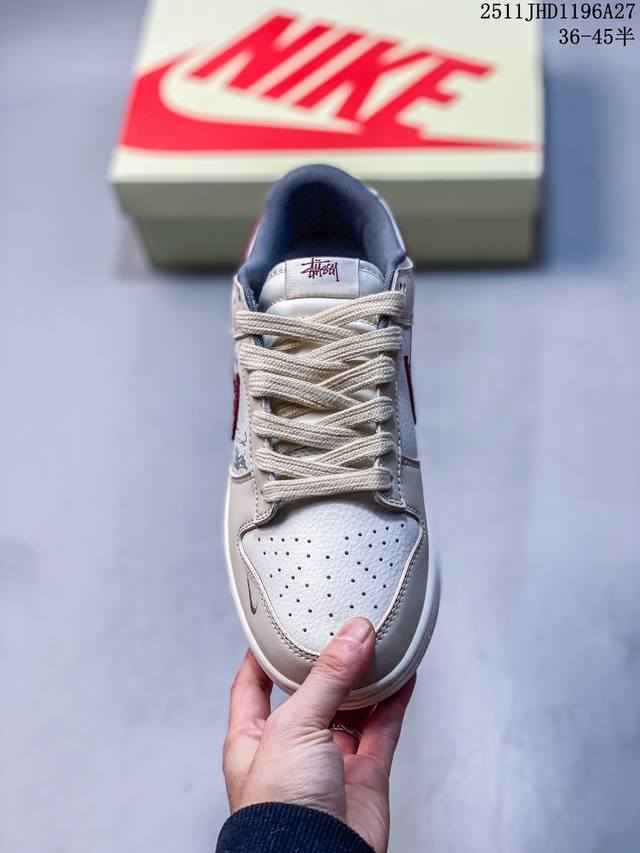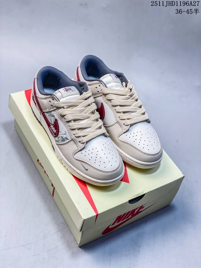Company Grade#Sb Duck Low Stusey Collaboration "Beige, White, and Red Swoosh Print Colorway High-Luxury Custom Edition" The unique design style and classic elements of the brand make this shoe a shoe with a unique identity and value. The fresh and three-dimensional appearance, coupled with the collaboration logo, further highlights its unique identity. This color scheme displays vitality and fashion sense, visually eye-catching. The texture of the shoe body and the delicate details make it look high-end and stylish. This "Sb" collaboration is a perfect combination of design and creativity, blending multiple individual styles, making it a highly anticipated trendy shoe. Low-top casual sneakers, custom shoe box, factory-direct, pure original quality, super high cleanliness, clean leather cutting without any rough edges, perfect details. Product Number: Jy69 88-103 Size: 36 36.5 37.5 38 38.5 39 40 40.5 41 42 42.5 43 44 44.5 45 11Jhd1196A27 DDD