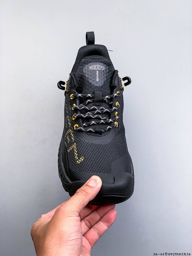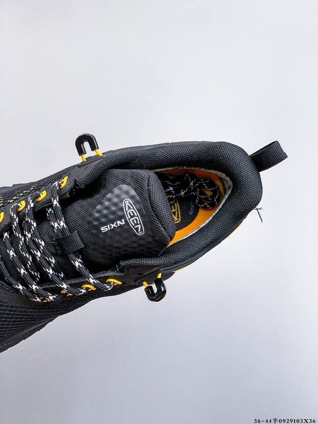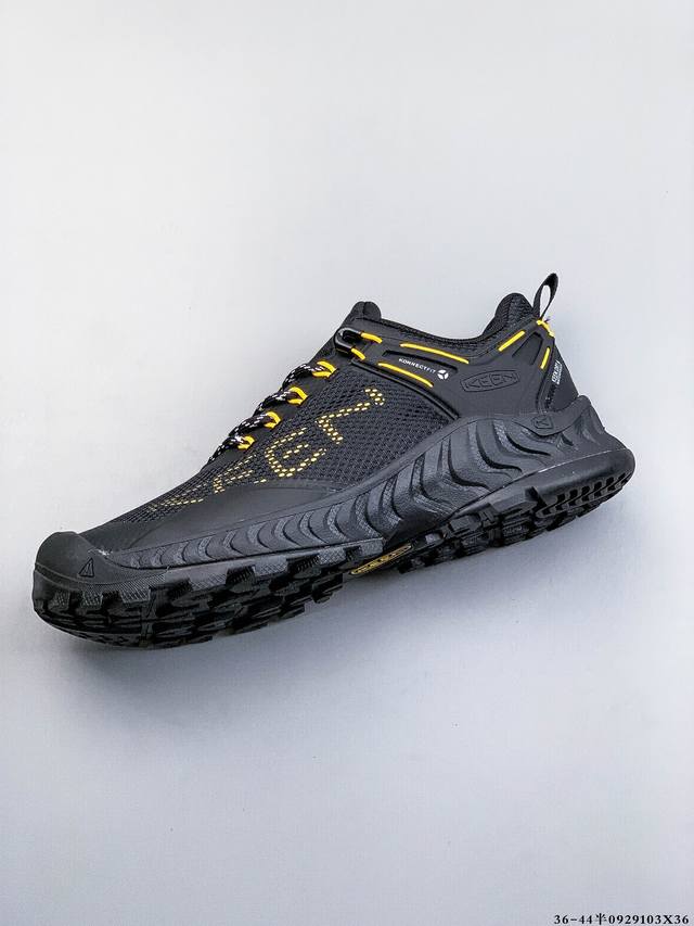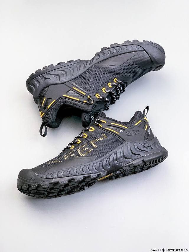 Company Level! Keen Nxis Evo Wp low-top waterproof and breathable outdoor hiking shoes. Mesh and TPU overlays increase durability. Comfortable and breathable textile lining enhances the wearing experience. Keen.Dry water-repellent, breathable membrane wraps the simple and stylish shoe body, allowing wearers to move freely in the mountains and fields, showcasing the modern extroverted and enterprising lifestyle. Keen.All-Terrain all-terrain rubber outsole with 4Mm multi-directional raised grooves provides excellent wear resistance and enhanced grip. Lightweight EVA midsole provides excellent cushioning performance, ensuring comfortable walking whether outdoor hiking or urban commuting. 0929103X36