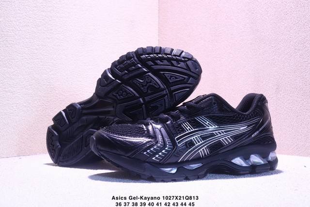 Company-grade Asics Gel-Kayano 14 professional running shoes. Features an engineered elastic double-layer recycled knit upper, 3D visible Gel cushioning latex in the heel, upgraded Ff Blast Plus cushioning technology in the midsole, and a high-abrasion-resistant rubber outsole for stable and powerful performance. (Xm1027Q813 )