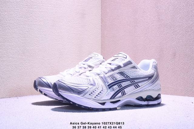 Company-grade Asics Gel-Kayano 14 professional running shoes. Features an engineered elastic double-layer recycled knit upper, 3D visible Gel cushioning latex in the heel, upgraded Ff Blast Plus cushioning technology in the midsole, and a high-abrasion-resistant rubber outsole for stable and powerful performance. (Xm1027Q813)