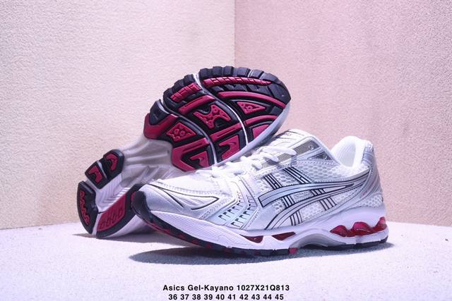 Company-grade Asics Gel-Kayano 14 professional running shoes. Features an engineered elastic double-layer recycled knit density upper, 3D visible Gel cushioning latex in the heel, upgraded Ff Blast Plus cushioning technology in the midsole, and a high-abrasion-resistant rubber outsole for stable and powerful performance. (Xm1027Q813)