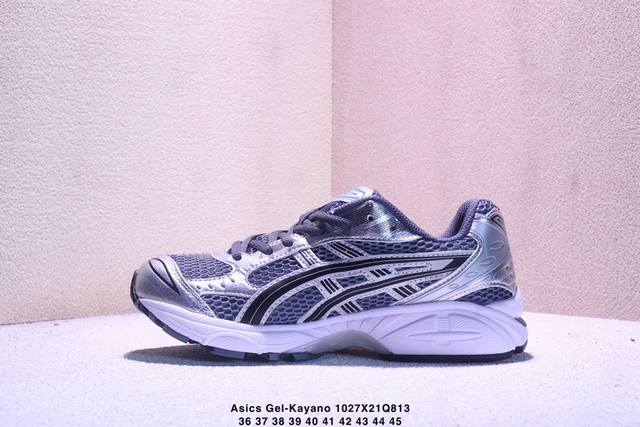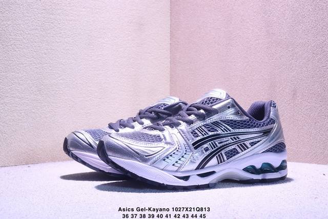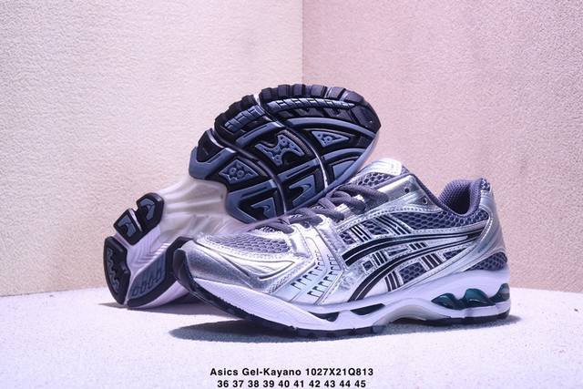 Company-grade Asics Gel-Kayano 14 professional running shoes. Features an engineered elastic double-layer recycled knit density upper, 3D visible Gel cushioning latex in the heel, upgraded Ff Blast Plus cushioning technology in the midsole, and a high-abrasion-resistant rubber outsole for stable and powerful performance. (Xm1027Q813 )