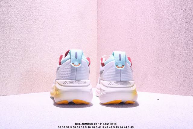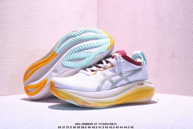 Company-grade Asics Gel-Nimbus 27 stability running shoes feature a double-layer jacquard mesh upper for improved support and breathability. The T-Gel stability system in the heel enhances overall support and structure, reducing impact load on the body. The innovative midsole offers lightweight responsiveness. Product Code: 10118946-400 Sizes: 36 37 37.5 38 39 39.5 40.5 41.5 42 42.5 43.5 44 45 Xm1110Q813