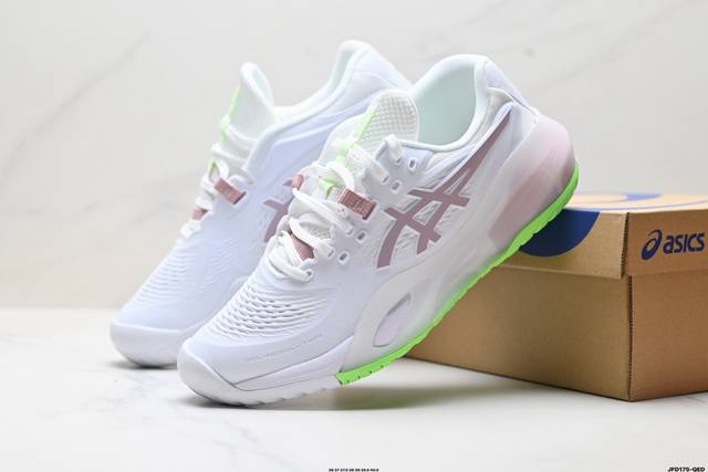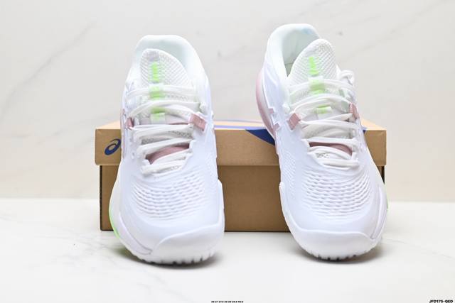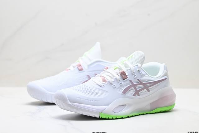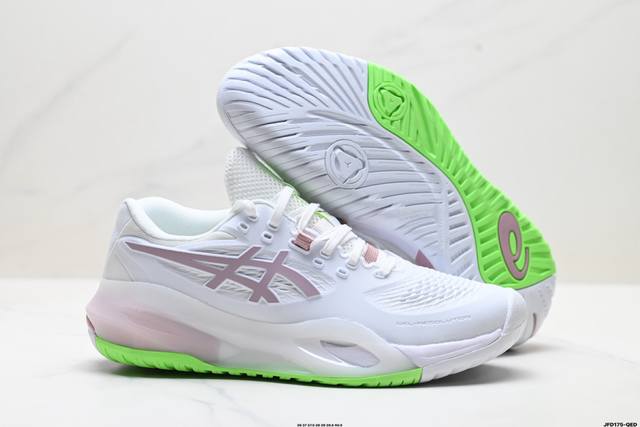 Company-grade Asics Gel-Resolution X Professional Tennis Shoes. The boneless design is an innovative technology that provides soft and ample cushioning with every strike, like walking on cotton. These shoes offer near-perfect comfort. Product Code: 1042A279-104. Sizes: 36, 37, 37.5, 38, 39, 39.5, 40.5. Ld:Jfd175-Qe.