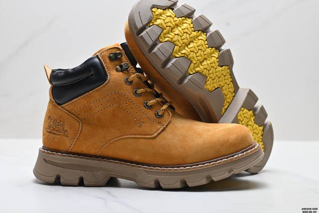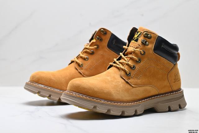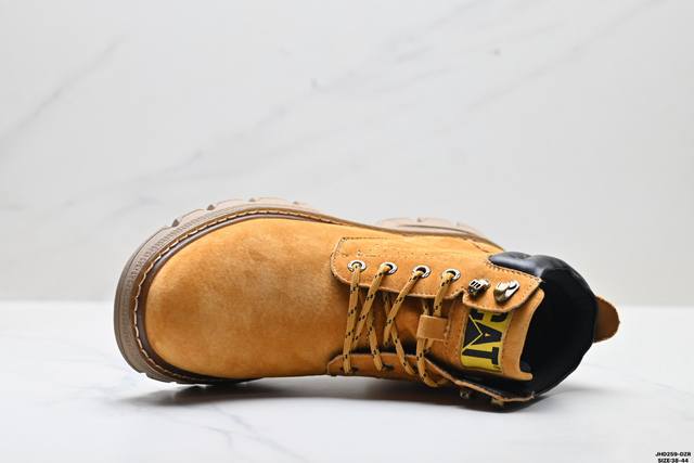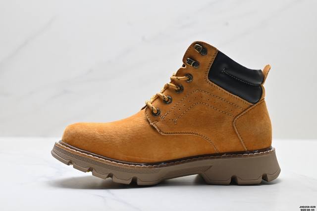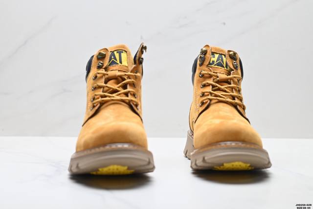 Company-grade Cat brand classic versatile outdoor casual Martin boots, made in Guangdong. High-quality products from a large factory, consistently focusing on fashionable and trendy styles. Made with imported Italian tumbled cowhide leather. All shoes are genuine cowhide. From the outsole to the hardware, all are made from OEM materials. High-quality products, no overcharging. Strict quality control for first orders. All shoes come with official website packaging. Perfect for winter, outdoor use, and casual everyday wear. A must-have for stylish men. Sizes: 38-44. Ld: Jhd259-Dzr