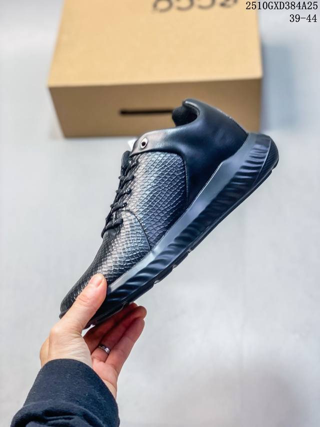 Company-grade Ecco shoes, a popular style on Xiaohongshu (Little Red Book), new versatile casual Ecco men's outdoor casual shoes, breathable, lightweight, lace-up, comfortable dad sneakers. Ecco is one of the world's four major casual footwear brands, headquartered in Denmark. Its shoes are characterized by their lightweight, soft and flexible materials, and comfortable wear. This Ecco shoe features a full leather upper, with an overall high-end, stylish, simple, and elegant design, and is non-slip and comfortable. Type: Men's shoes Sizes: 39-44 Example: 10Gxd384A25