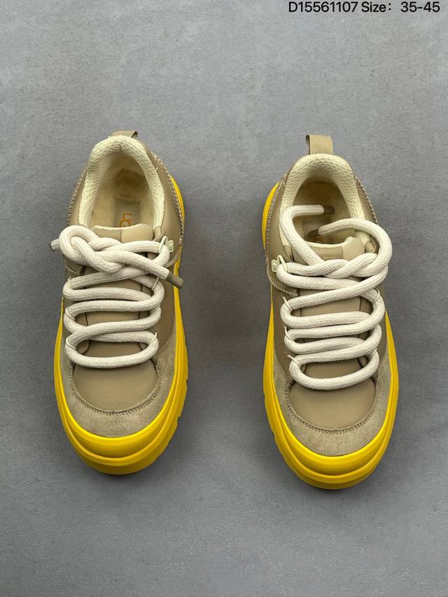 Company-grade genuine Ugg retro men's and women's low-top sneakers, trendy boots, thick-soled, height-increasing Martin boots, original single-piece Nuem. Based on the original design, retro color blocking is added; a classic return, embodying the life of Generation Z youth; a walking fashion trendsetter. Material: High-gloss fabric with cowhide and wool lining, rubber outsole. Item No.: M 1144096 Size: 35-45 Code: D15561107