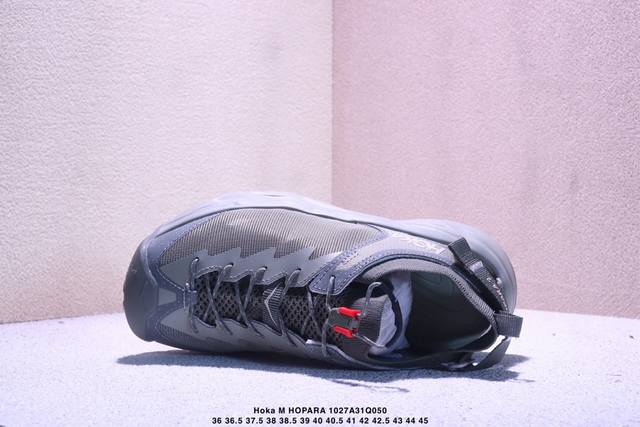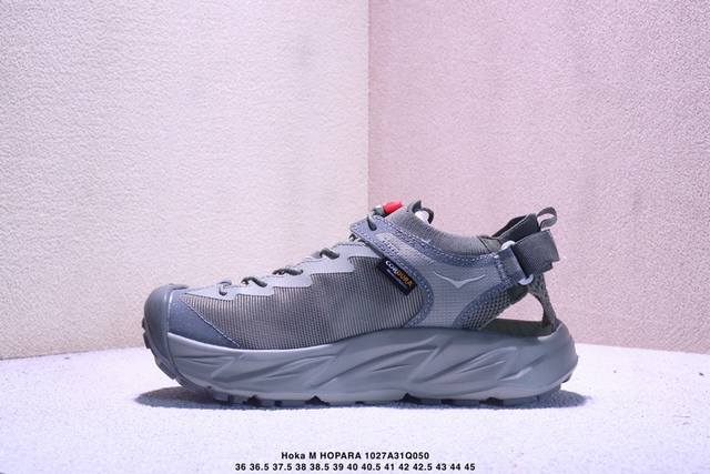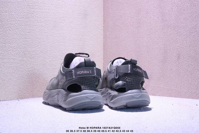 Company-grade Hoka M Hopara 2 Outdoor Functional Mountain Sandals - First Look! The shoe's design immediately conveys a strong sense of outdoor functionality. The rugged, chunky sole design is inherited from the Hoka One One running shoe. The upper is made of neoprene and paired with a high-grip rubber outsole. This sandal is very lightweight, making it comfortable and easy to wear. Official product number: 114767. Sizes: 36, 36.5, 37.5, 38, 38.5, 39, 40, 40.5, 41, 42, 42.5, 43, 44, 45. (Xm1027Q050 )