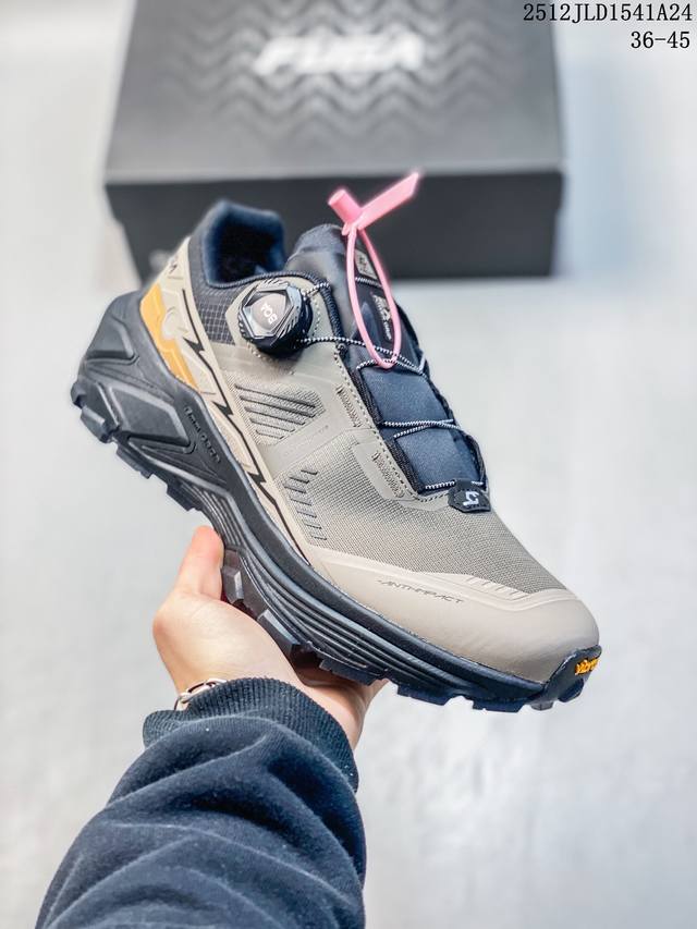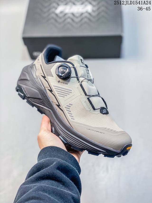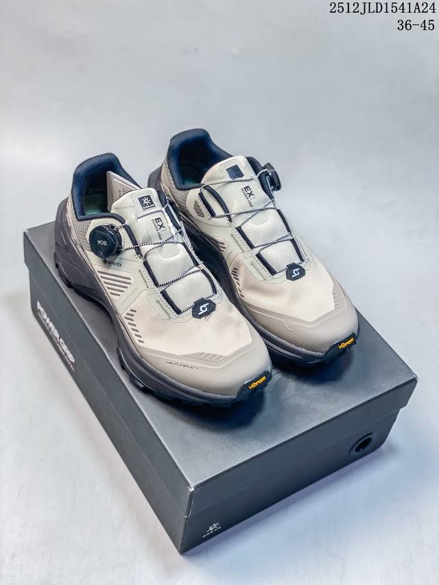 Company-grade Kailas Fuga Ex3 Gtx Boa hiking and running shoes with thick sole, cushioning, mesh TPU shock absorption, anti-slip, breathable, wrap-around, impact-resistant, lightweight, and responsive low-top for superior grip. The Boa fitting system allows for quick adjustment of tightness with a single knob, and easy on and off. The Yibram Megagrip wet-wet anti-slip outsole provides strong grip for both dry and wet surfaces. The Eccevai thick sole offers excellent cushioning and a pump-like feel. Increased grip reduces fatigue