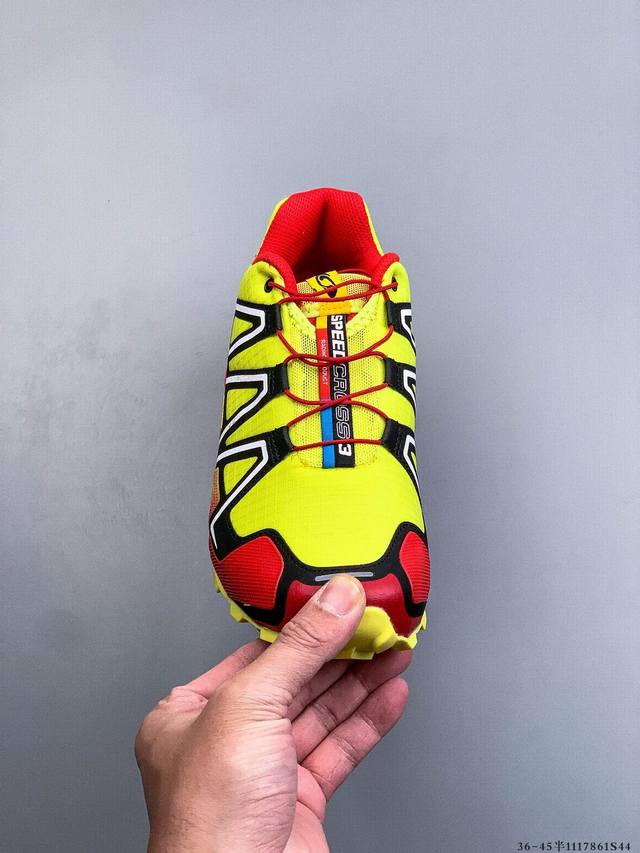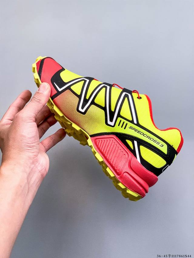 Company-grade Salomon Speedcross 3 Simple Comfortable Non-slip Low-top Outdoor Performance Shoes DDD The shoes combine different geometric patterns with outsole materials of varying densities to maximize grip and durability. The legendary deep groove pattern provides strong traction during off-road driving. DDD Features a breathable mesh and protective leather upper, quick-lacing closure, Osolai eco-friendly deodorizing ring-shaped insole, external 4D advanced technology, and a Contagrip outsole. DDD Item No.: 474936-30 DDD 1117861S44 DDD