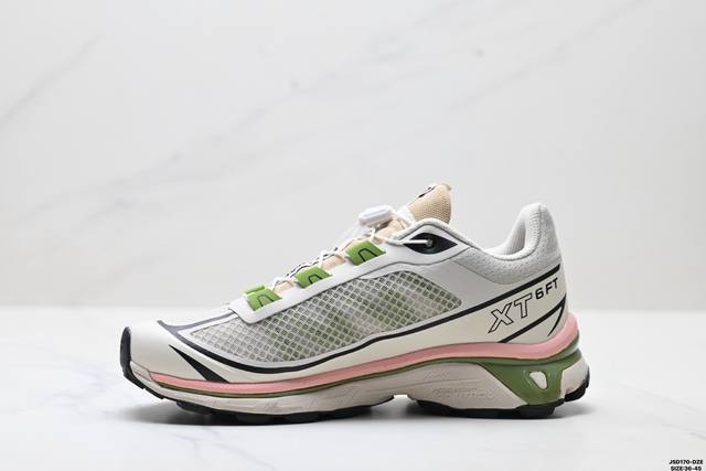 Company-grade Salomon XT-6 FT outdoor trail running shoes. The upper features Sensifit fit technology for a full-body wrap around the foot. The heel and outsole traction design provide strong grip, making them more suitable for rugged terrain. The lightweight 3D Advanced Chassis chassis material and maximized lug design offer enhanced stability and protection. The outsole uses Contagrip high-abrasion-resistant material in high-wear areas to withstand the challenges of long-distance running on hard urban surfaces. Product Code: 471510-20 Sizes: 36-45 ID: Jsd170-Dze