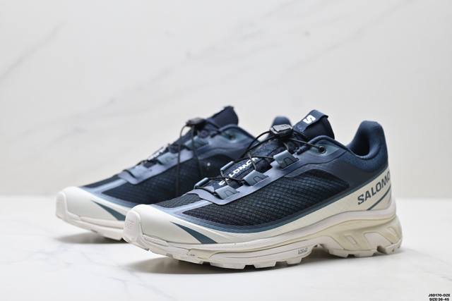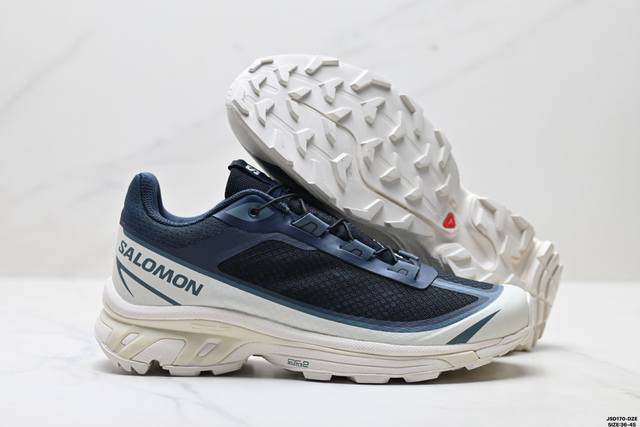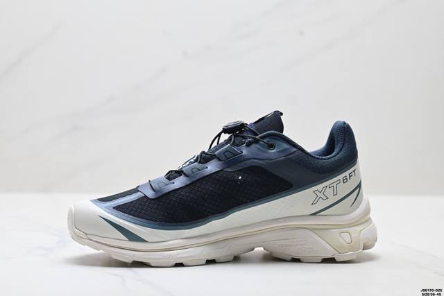Company-grade Salomon XT-6 FT outdoor trail running shoes. The upper features Sensifit fit technology for a full-body wrap around the foot. The heel and outsole traction design provide strong grip, making them more suitable for rugged terrain. The lightweight 3D Advanced Chassis chassis material and maximized lug design offer enhanced stability and protection. The outsole uses Contagrip high-abrasion-resistant material in high-wear areas to withstand the challenges of long-distance running on hard urban surfaces. Product Code: 471510-20 Sizes: 36-45 ID: Jsd170-Dze
