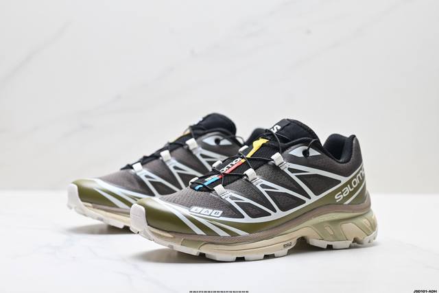 Company-grade Salomon XT-6 outdoor trail running shoes. The upper features Sensifit fit technology for a full-body wrap around the foot. The heel and outsole traction design provide strong grip, making them more suitable for rugged terrain. The lightweight 3D Advanced Chassis chassis material and maximized lug design offer enhanced stability and protection. The outsole uses Contagrip high-abrasion-resistant material in high-wear areas to withstand the challenges of long-distance running on hard urban surfaces. Product Code: 417412-27 Sizes: 36, 36.5, 37.5, 38, 38.5, 39, 40, 40.5, 41, 42, 42.5, 43, 44, 45 ID: Jsd101-Adh