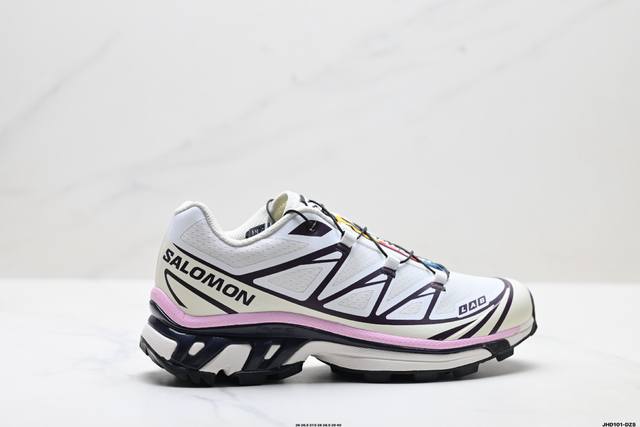 Company-grade Salomon XT-6 outdoor trail running shoes. The upper features Sensifit fit technology for a full-body wrap around the foot. The heel and outsole traction design provide strong grip, making them more suitable for rugged terrain. The lightweight 3D Advanced Chassis chassis material and maximized spike design offer enhanced stability and protection. The outsole uses Contagrip high-abrasion-resistant material in high-wear areas to withstand the challenges of long-distance running on hard urban surfaces. Product No.: 478640-26 ID: Jhd101-Dzs