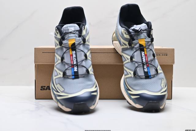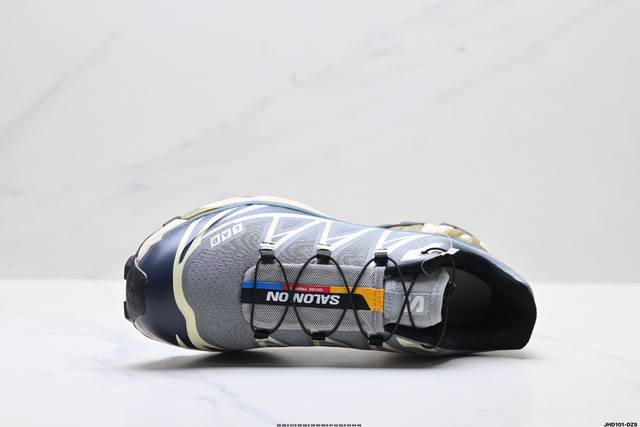 Company-grade Salomon XT-6 outdoor trail running shoes. The upper features Sensifit technology for a full-body fit and wrap around the foot. The heel and outsole traction design provide strong grip, making them more suitable for rugged terrain. The lightweight 3D Advanced Chassis chassis material and maximized lug design offer enhanced stability and protection. The outsole uses Contagrip high-abrasion-resistant material in high-wear areas to withstand the challenges of long-distance running on hard urban surfaces. Product Code: 478640-26 Sizes: 36, 36.5, 37.5, 38, 38.5, 39, 40, 40.5, 41, 42, 42.5, 43, 44, 45 ID: Jhd101-Dzs