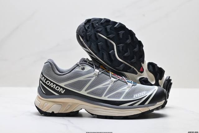 Company-grade Salomon XT-6 outdoor trail running shoes. The upper features Sensifit fit technology for a full-body fit and wrap around the foot. The heel and outsole traction design provide strong grip, making them more suitable for rugged terrain. The lightweight 3D Advanced Chassis chassis material and maximized lug design offer enhanced stability and protection. The outsole uses Contagrip high-abrasion-resistant material in high-wear areas to withstand the challenges of long-distance running on hard urban surfaces. Product Code: 478640-26 Sizes: 36, 36.5, 37.5, 38, 38.5, 39, 40, 40.5, 41, 42, 42.5, 43, 44, 45 ID: Jhd101-Dzs