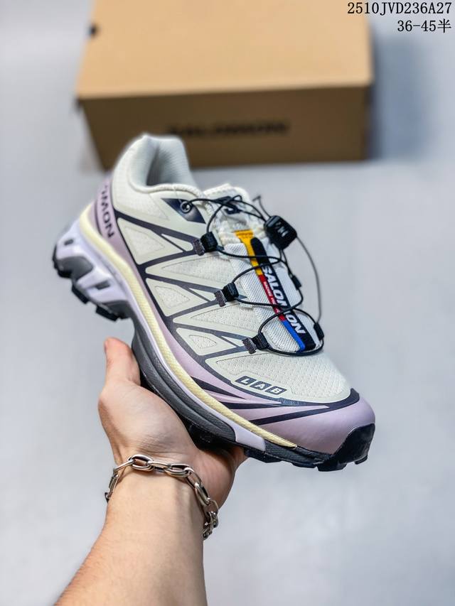 Company-grade Salomon XT-6 outdoor trail running shoes. The upper features Sensifit technology for a full-body fit and wrap around the foot. The heel and outsole traction design provide strong grip, making them more suitable for rugged terrain. The lightweight 3D Advanced Chassis chassis material and maximized lug design offer enhanced stability and protection. The outsole uses Contagrip high-abrasion-resistant material in high-wear areas to withstand the challenges of long-distance running on hard urban surfaces. Product Code: 478640-26 Sizes: 36, 36.5, 37.5, 38, 38.5, 39, 40, 40.5, 41, 42, 42.5, 43, 44, 45 ID: Jhd101-Dzs ID: 10Jvd236A27