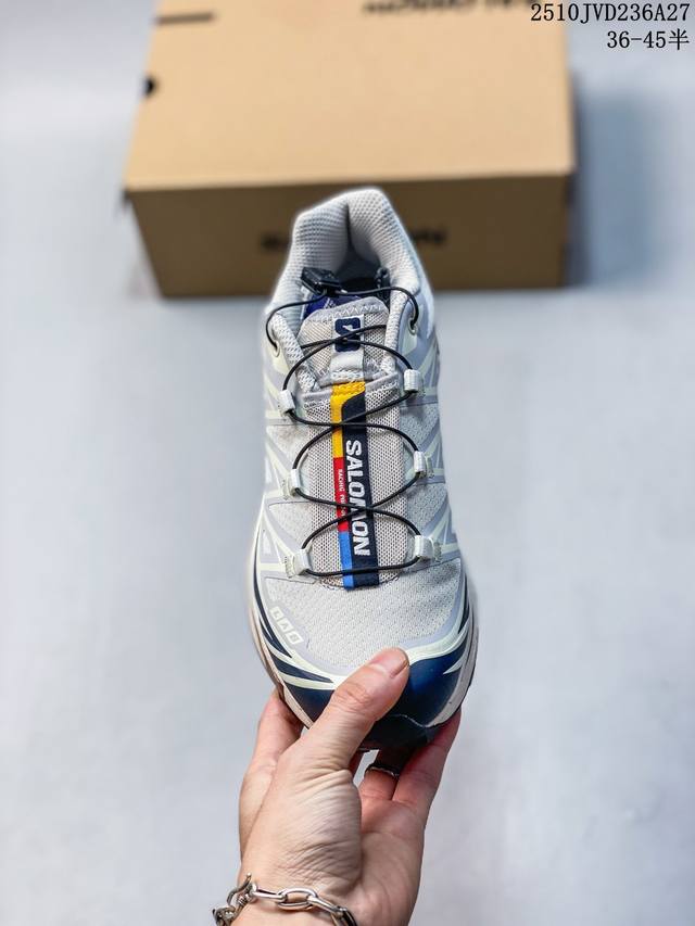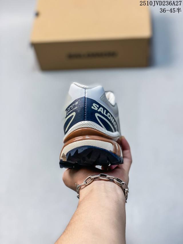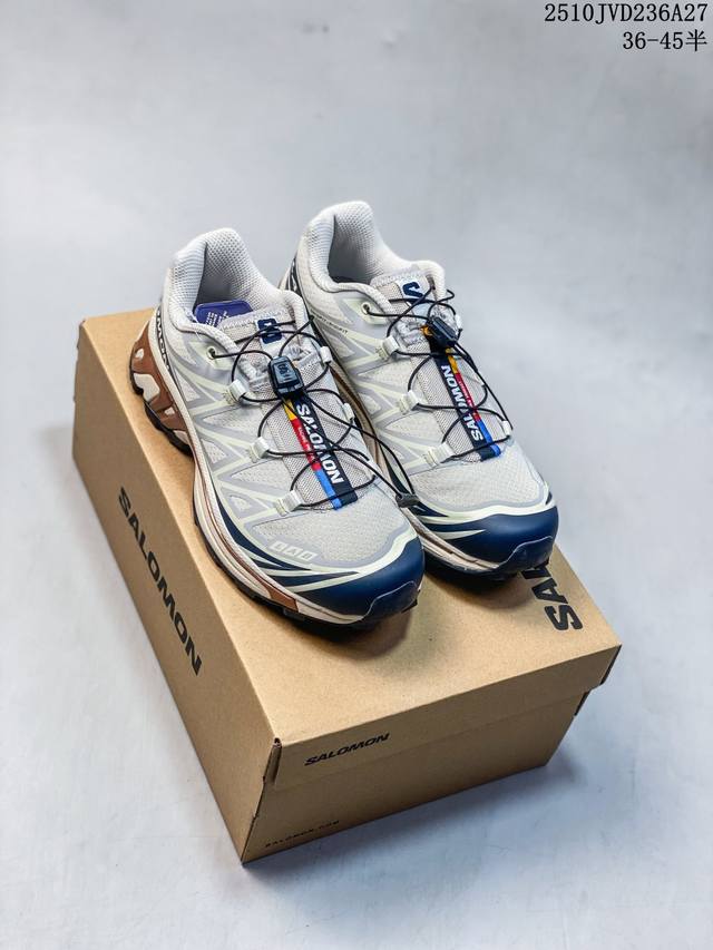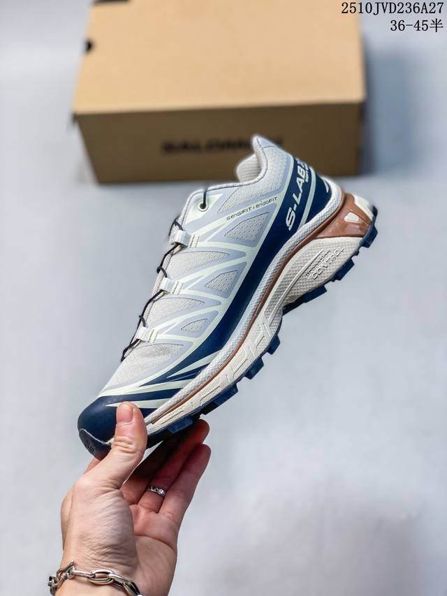 Company-grade Salomon XT-6 outdoor trail running shoes. The upper features Sensifit fit technology for a comprehensive fit and wrap around the foot. The heel and outsole traction design provide strong grip, making them more suitable for rugged terrain. The lightweight 3D Advanced Chassis chassis material and maximized lug design offer enhanced stability and protection. The outsole uses Contagrip high-abrasion-resistant material in high-wear areas to withstand the challenges of long-distance running on hard urban surfaces. Product Code: 478640-26 Sizes: 36, 36.5, 37.5, 38, 38.5, 39, 40, 40.5, 41, 42, 42.5, 43, 44, 45 ID: Jhd101-Dzs ID: 10Jvd236A27