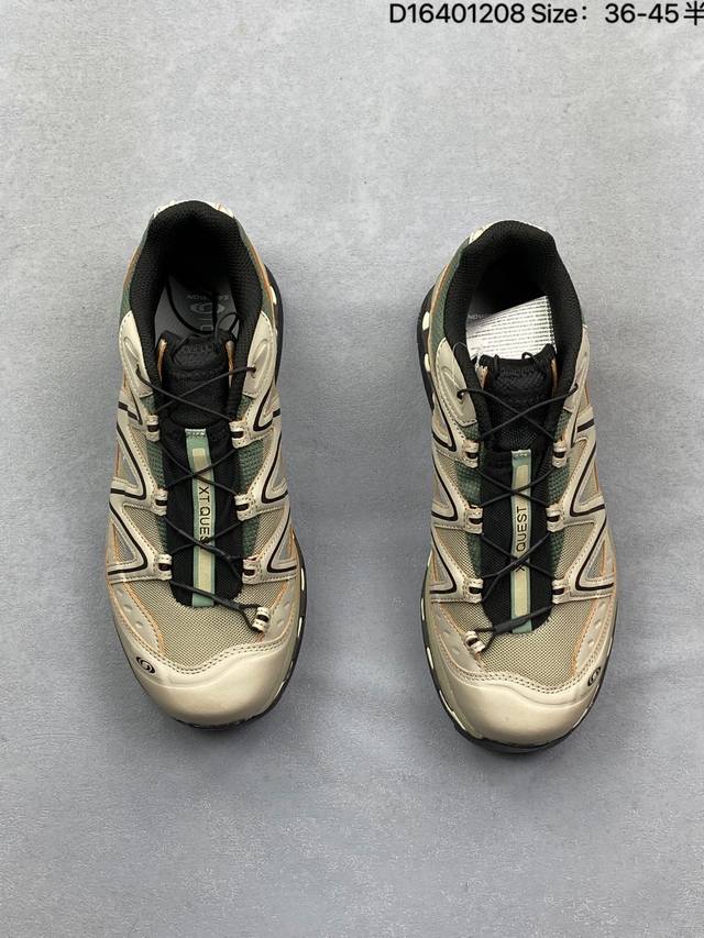 Company-grade Salomon Xt-Quest Adv Explorer Series Outdoor Trail Running Shoes. The upper features Sensifit technology for a comprehensive fit and wrap around the foot. The heel and outsole traction design provide strong grip, making it more suitable for rugged terrain. Its 3D Advanced Chassis chassis material is lightweight with maximized lug design for enhanced stability and protection. The outsole uses Contagrip high-abrasion-resistant material in high-wear areas to handle the challenges of long-distance running on hard urban surfaces. Product Code: 474790-20. Sizes: 36, 36.5, 37.5, 38, 38.5, 39, 40, 40.5, 41, 42, 42.5, 43, 44, 45. (D16401208)